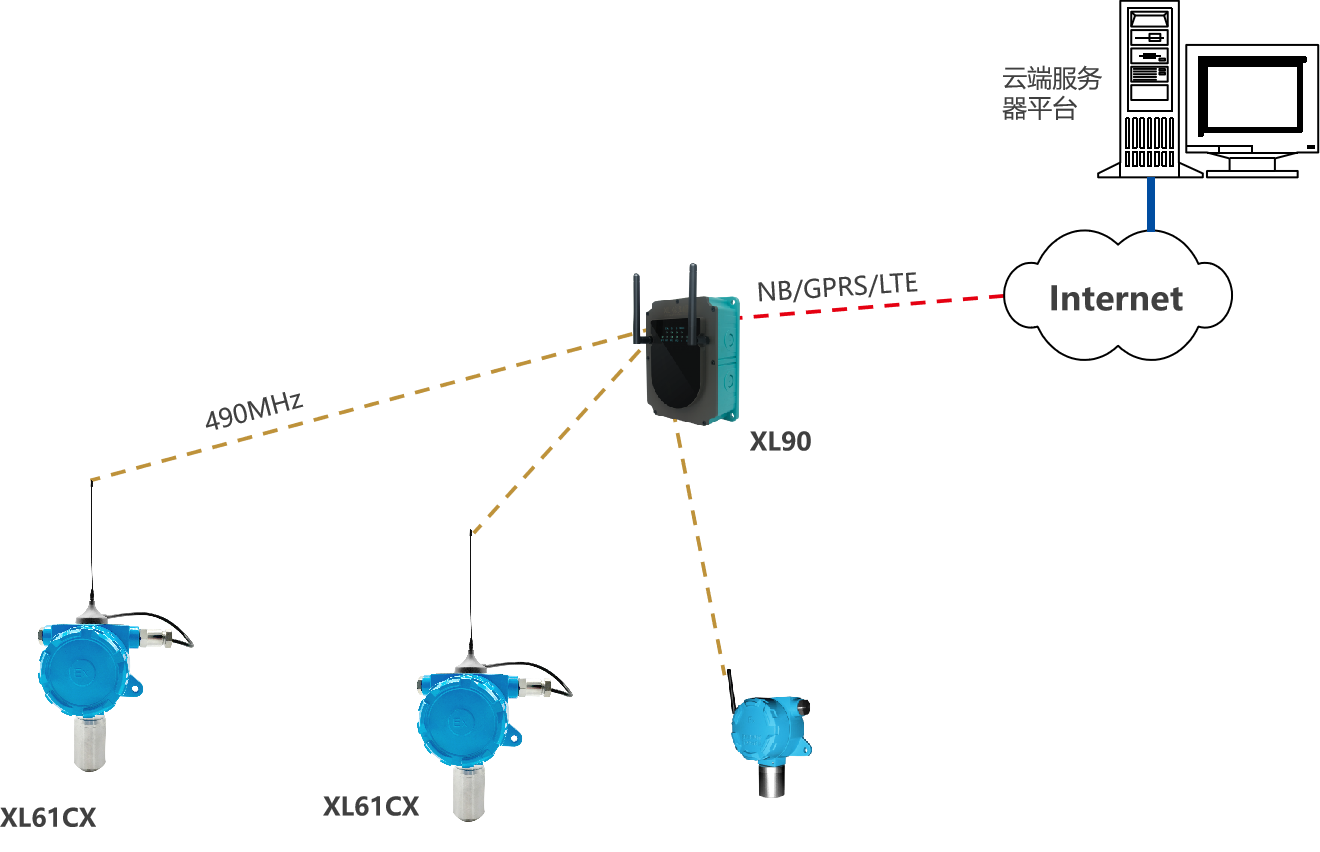 XL90,將數據上傳給企業內部的多個系統軟件平臺;通過LTE(4g)/NB/GPRS將數據上傳至云服務器