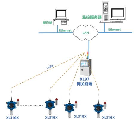 增加現(xiàn)場集中監(jiān)視,可配XL97網(wǎng)關(guān)終端,讀取區(qū)域內(nèi)氣體傳感器數(shù)據(jù),分析處理、顯示、報(bào)警,并轉(zhuǎn)發(fā)至監(jiān)控中心服務(wù)器。
