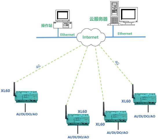 選擇XL60無線采集裝置,搭配模擬量輸入模塊采集液位數(shù)據(jù)和管網(wǎng)關(guān)鍵節(jié)點(diǎn)的壓力數(shù)據(jù),通過開關(guān)量輸入/輸出模塊讀取當(dāng)前水泵的開關(guān)狀態(tài),并根據(jù)當(dāng)前數(shù)據(jù)遠(yuǎn)程控制水泵的啟、停。