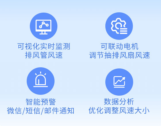根據(jù)現(xiàn)場需求,可聯(lián)動電機,當風速過小或者過大,自動調(diào)節(jié)抽排風扇的轉(zhuǎn)速,以保持排氣管道內(nèi)的風速控制在合適范圍內(nèi)。