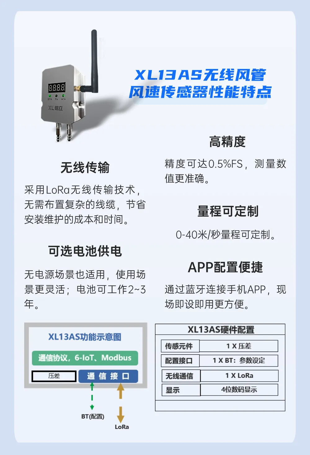 選擇XL13AS無(wú)線風(fēng)管風(fēng)速傳感器,對(duì)當(dāng)前風(fēng)速實(shí)時(shí)監(jiān)測(cè)。帶顯示,現(xiàn)場(chǎng)可直觀了解當(dāng)前風(fēng)速。