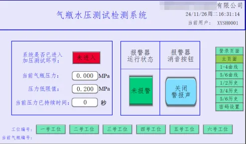 歷史記錄:自動(dòng)記錄測(cè)試時(shí)間、操作員身份信息、工位信息、鋼瓶身份信息、壓力數(shù)據(jù),生成歷史曲線;